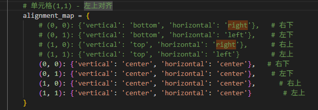(0, 0): {'vertical': 'center', 'horizontal': 'center'}, # 右下