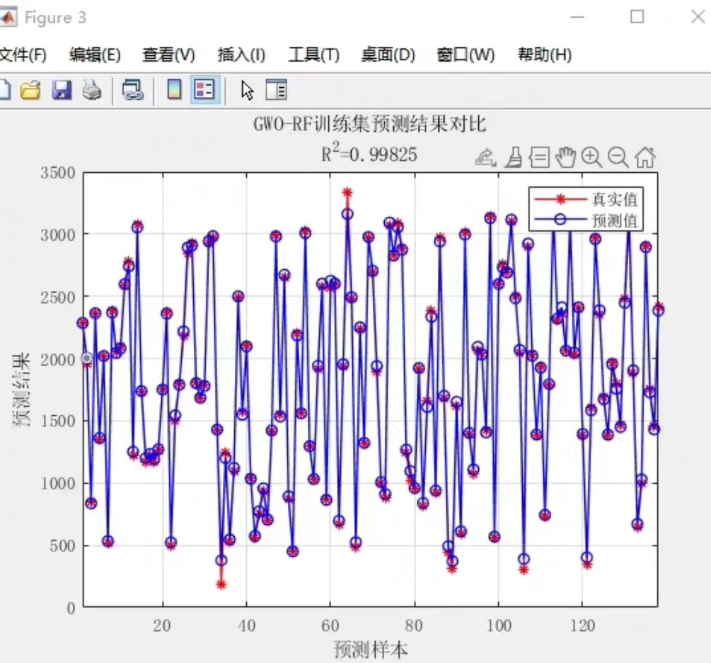 IGWO-RF这套组合拳最近在特征回归预测领域有点小火,核心思路就是用改进版灰狼算法给随机森林调参。咱们先看结果------测试集上的预测值和真实值曲线贴合度肉眼可见的高,关键这玩意儿还真不挑数据,表格数据塞进去就能跑。