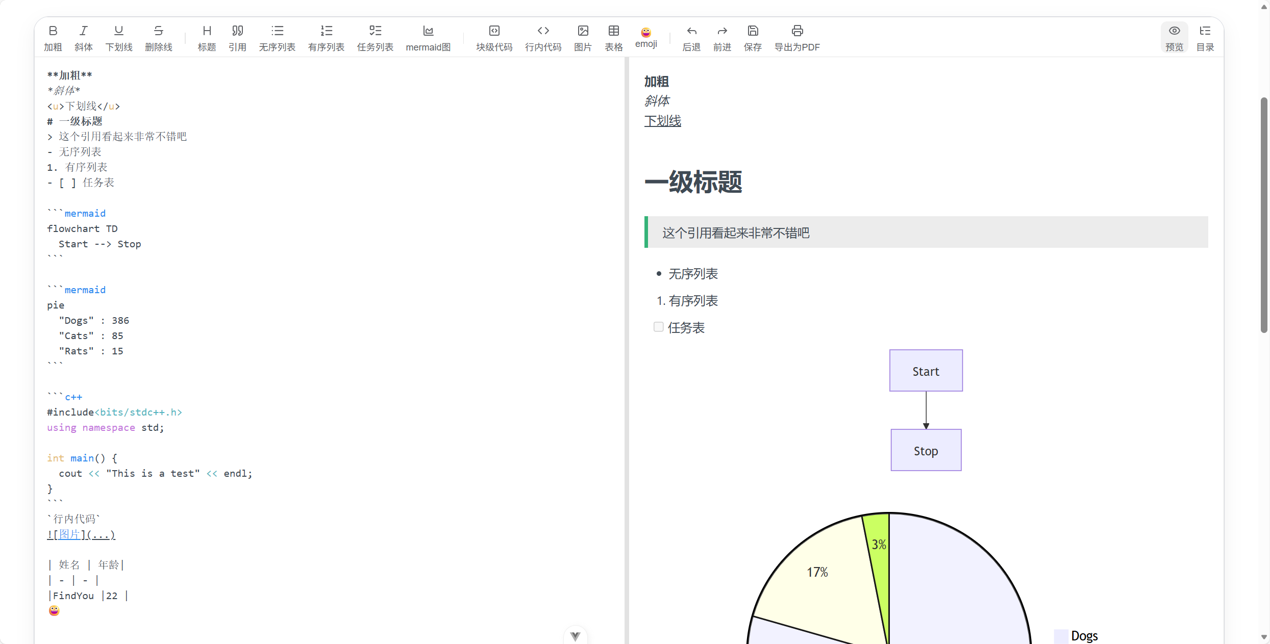 <!-- 自定义工具栏:文字居中、导出PDF、Emoji -->