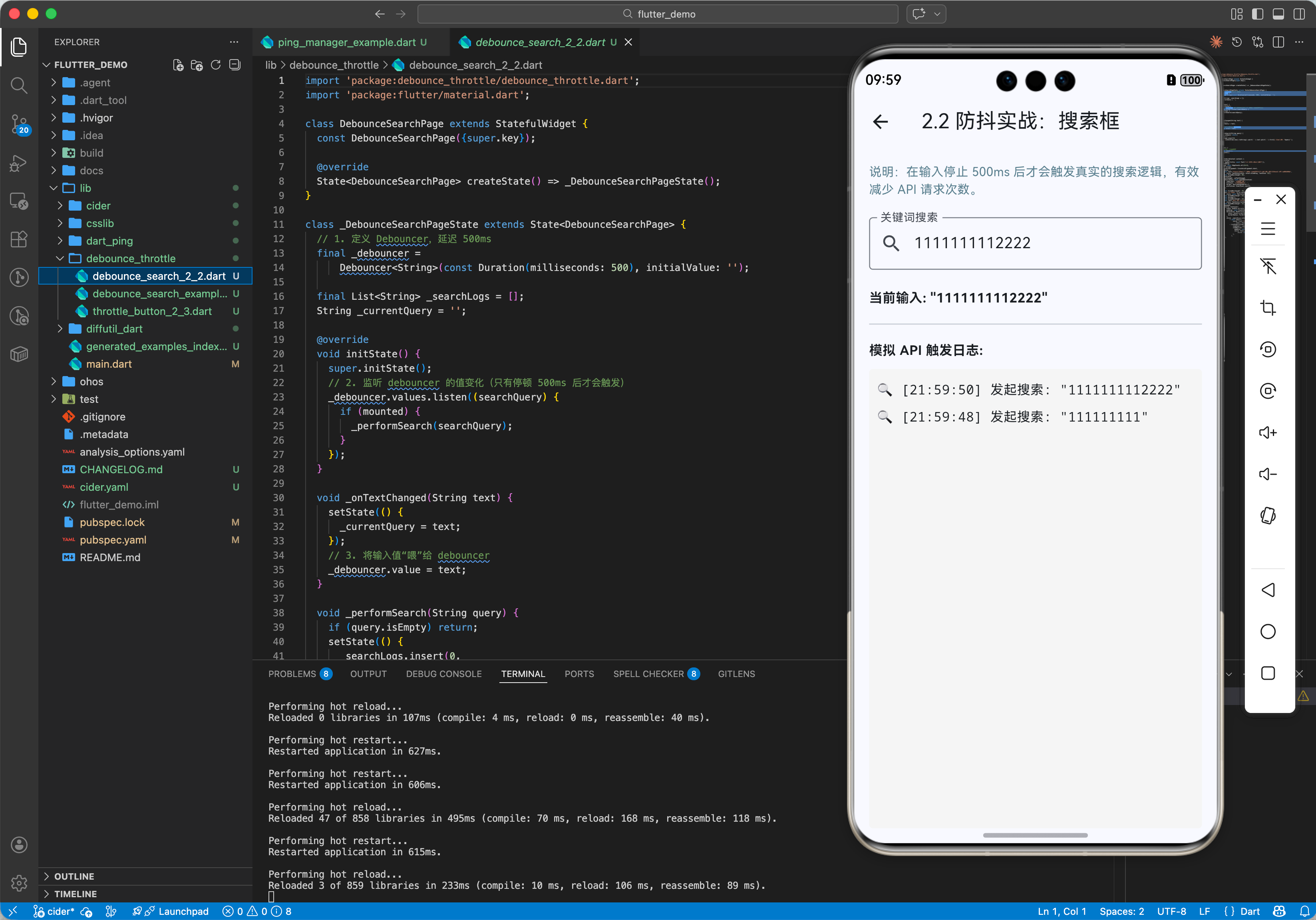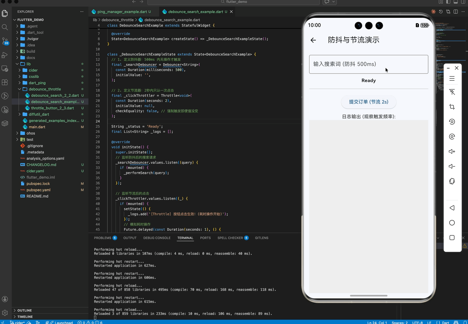 dispose时务必调用cancel()或关闭它们。 - 区分场景:搜索框用 Debounce,按钮和滚动用 Throttle。不要混用。