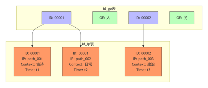 IP1[ID: 00001<br>IP: path_001<br>Context: 古诗<br>Time: t1]