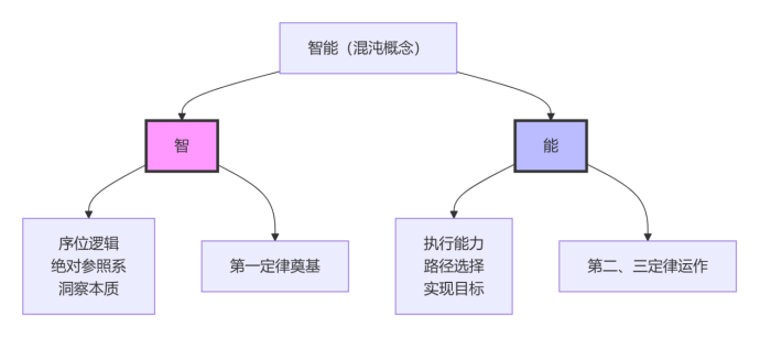 这一公式将汉语中"智"与"能"的天然切割激活,彻底终结了"智能"概念的混沌状态。其中: