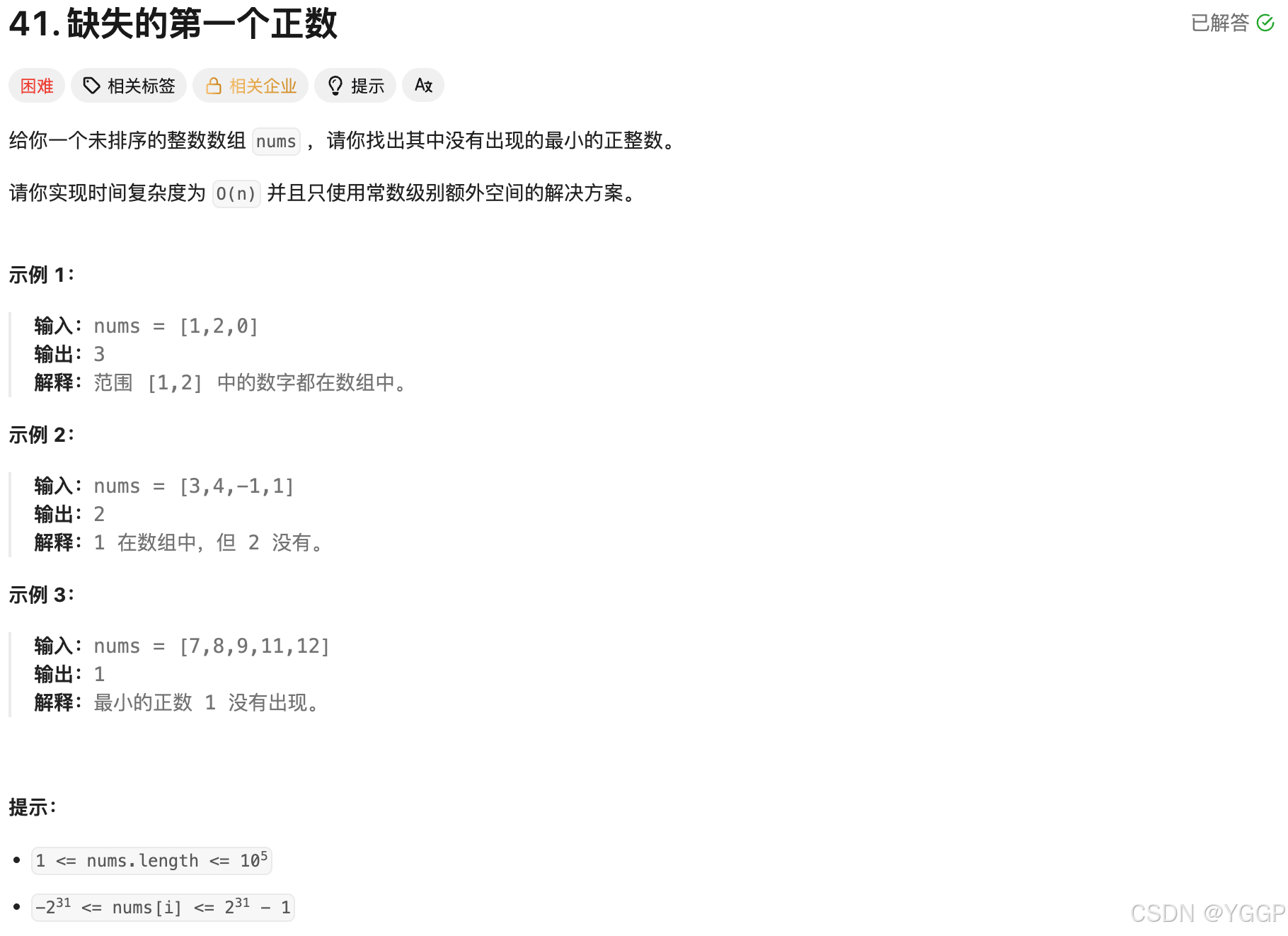 41. 缺失的第一个正数
