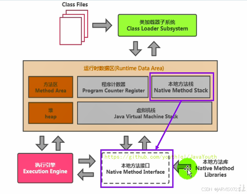 具体做法:本地方法栈当中登记本地方法,执行引擎执行时加载本地方法。