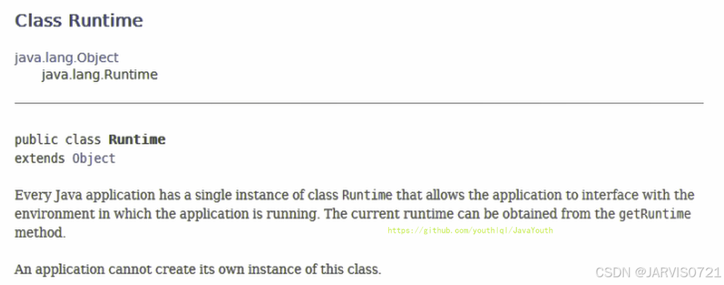 每个 JVM 都只有一个Runtime实例。也就是运行时环境。