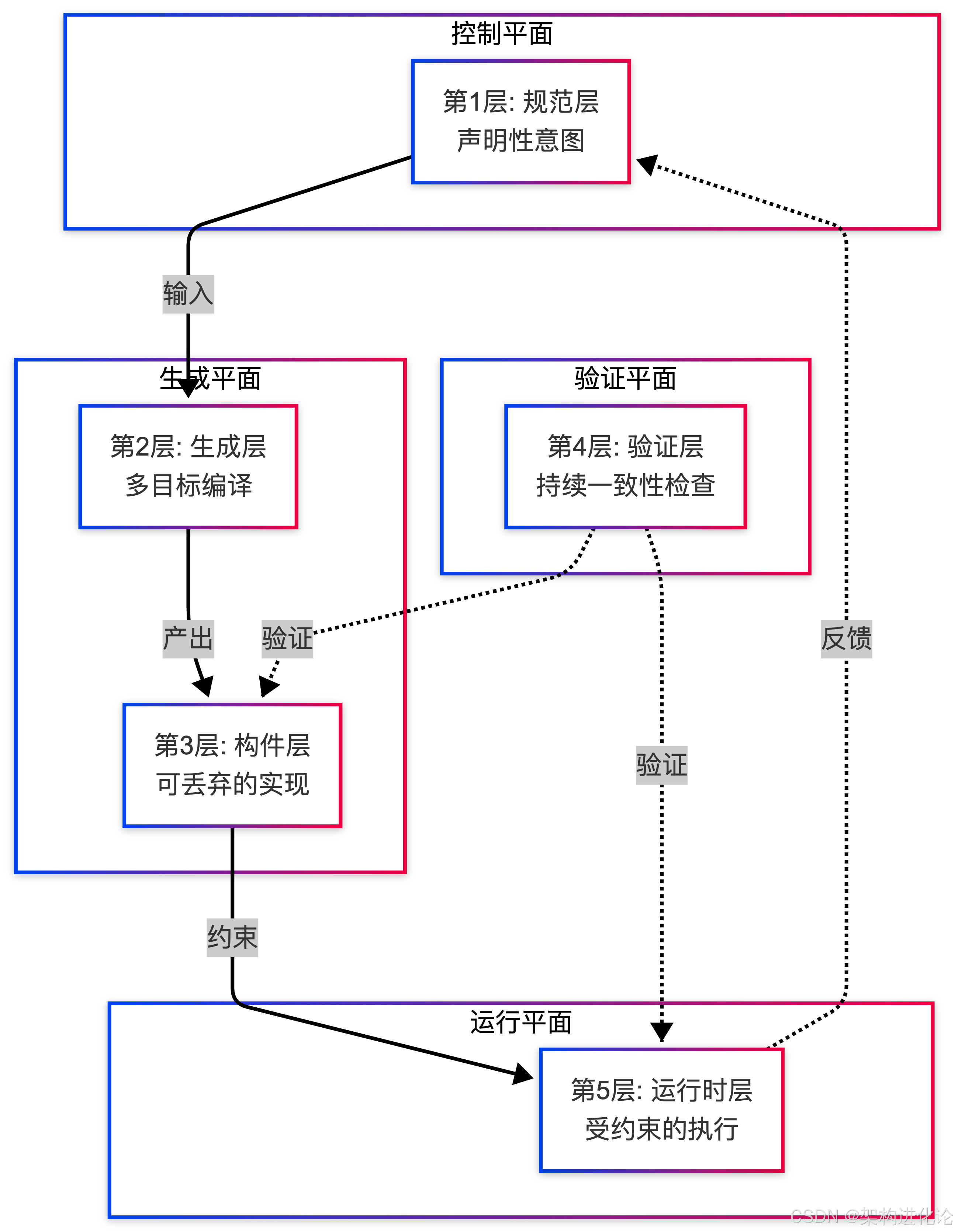 这种架构逆转向量(Architectural Inversion Vector)意味着:规范成为系统现实的权威定义,实现是持续派生、验证的,并且在必要时重新生成以符合该真实性。
