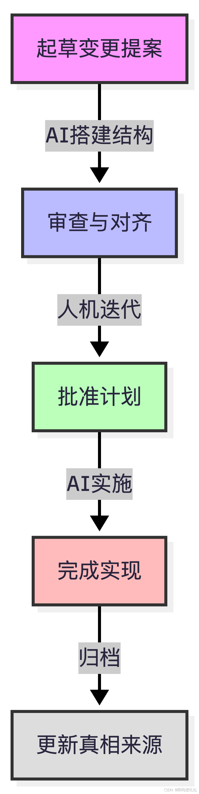| 变更管理 | 线性工作流 | 提案→归档(类似分支) | 动态分级响应 |