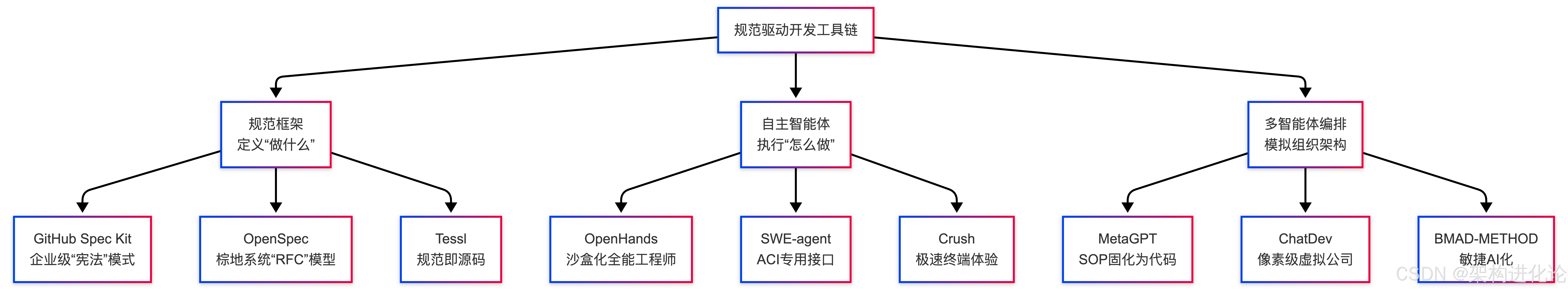 行业对这场危机的回应,是一场从"即兴提示"到"规范驱动"的深刻转向。开源社区在过去12个月内构建了完整的SDD工具链,正在分化为三大层级: