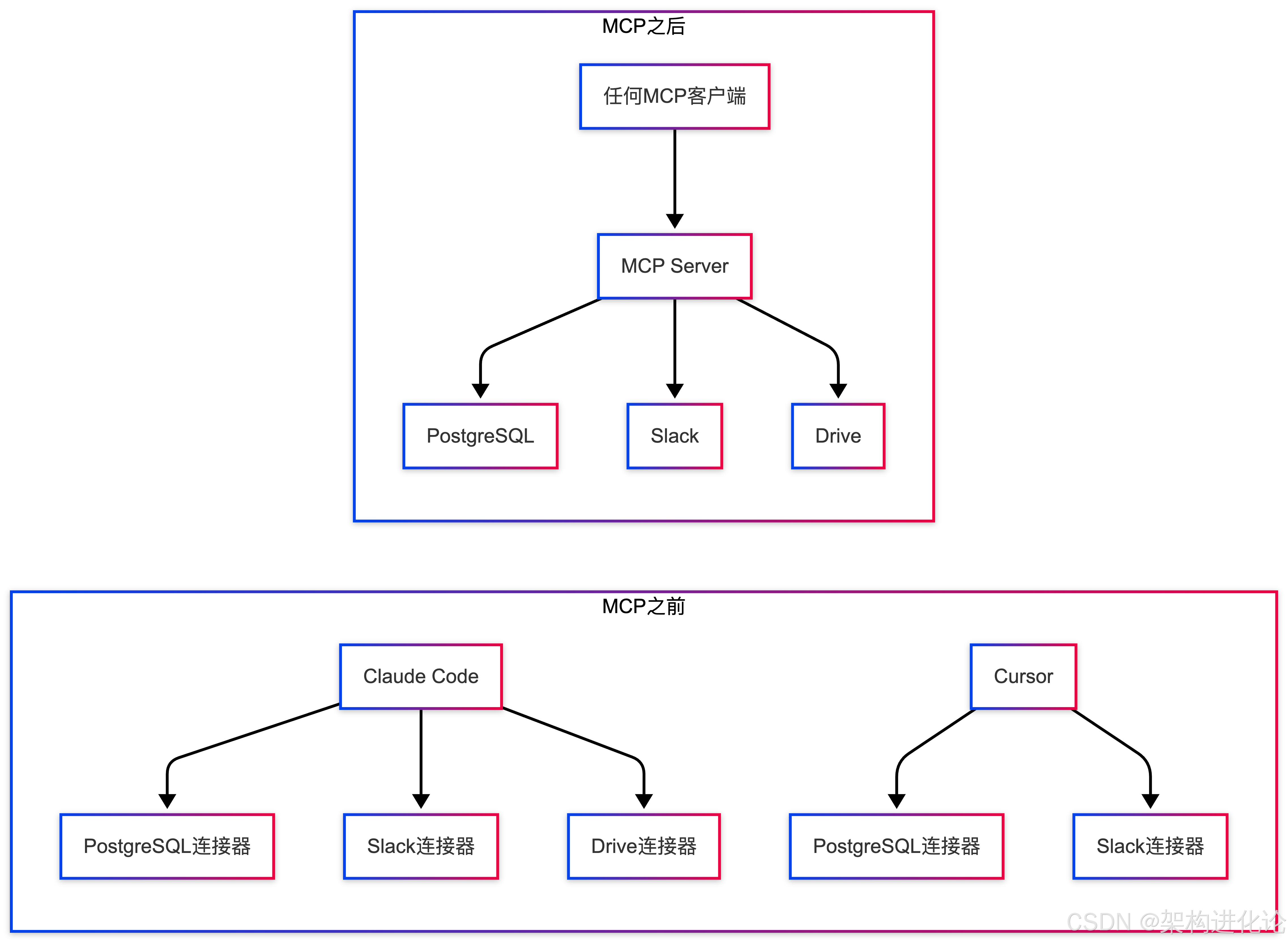 模型上下文协议(Model Context Protocol, MCP)正在成为AI智能体生态的关键基础设施。在MCP之前,每个工具都需要单独编写连接器访问PostgreSQL、Slack或Google Drive。(扩展阅读:9个革命性MCP工具概览:从本地客户端到智能研究助手、MCP Server深度评估报告:效能差异、优化策略与未来演进路径、MCP架构:大模型时代的分布式训练革命、MCP架构:模型上下文协议的革命性创新设计、MCP架构:AI时代的标准化上下文交互协议、A2A vs MCP:智能体通信协议的框架选择与最佳实践、MCP vs Function Calling:重构AI工具交互范式的技术真相、MCP、Function Calling与Agent:构建AI协作生态的三层架构体系、MCP与Skills:AI架构的进化,从连接协议到认知框架的演进、Skills vs MCP:谁才是大模型的"HTTP时刻"?)