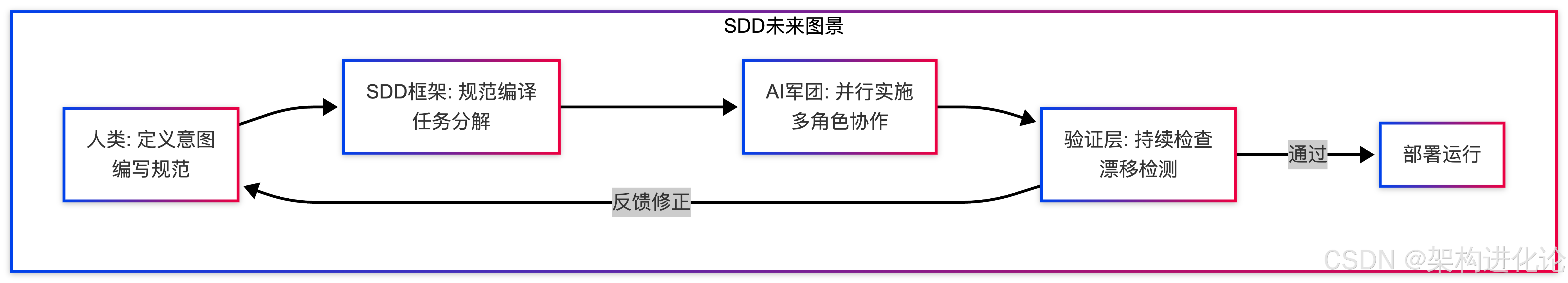 正是在这个拐点上,规范驱动开发(Spec-Driven Development, SDD)作为一种救赎性范式浮出水面。本文将从大模型架构师的视角,系统阐述SDD的技术演进、核心框架与工程实践,揭示其如何将软件架构从"咨询性建议"转变为"可执行契约"。(扩展阅读:基于规范驱动开发的下一代软件工程范式:从理论到实践、意图即代码:从Vibe Coding到Spec-Driven Development,软件工程的范式跃迁)