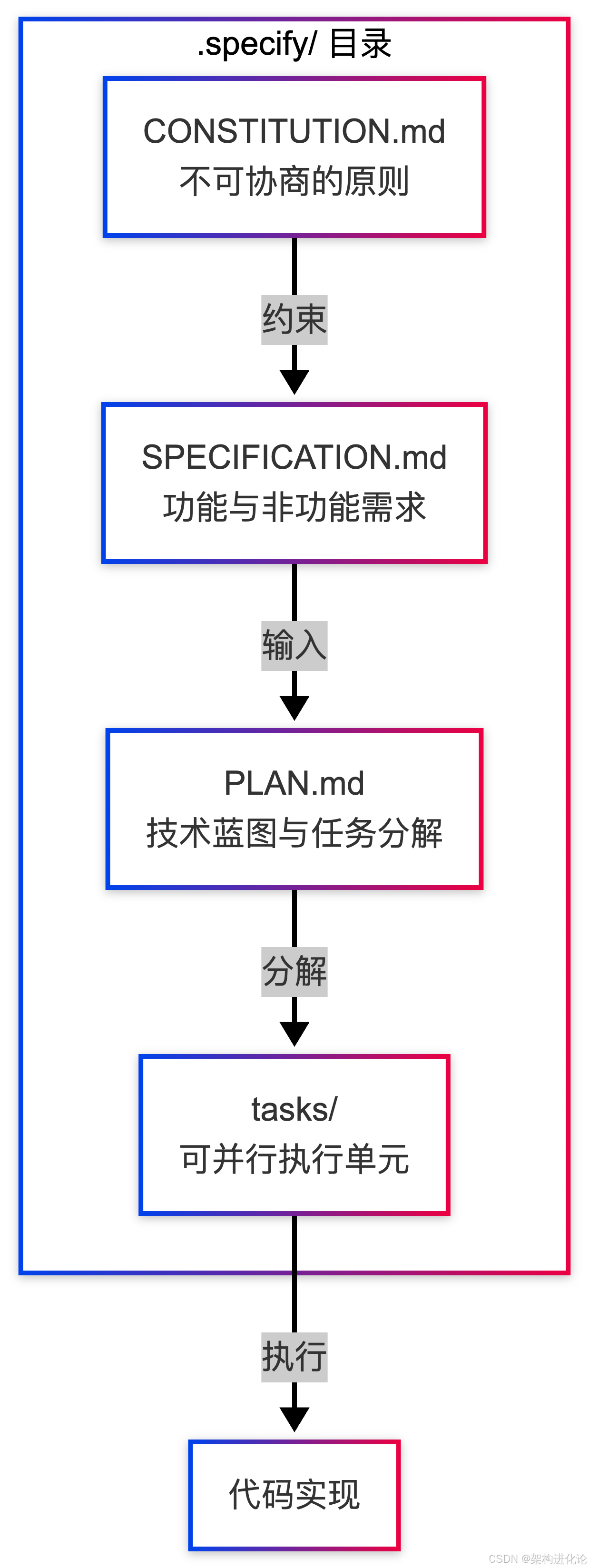 当AI能写出95%的代码,人类的价值在于决定"做什么"和"为什么做"。规范驱动开发不是束缚,而是让AI在正确轨道上狂奔的加速器。在这个新时代,架构不再是咨询性建议,而是可执行的契约。