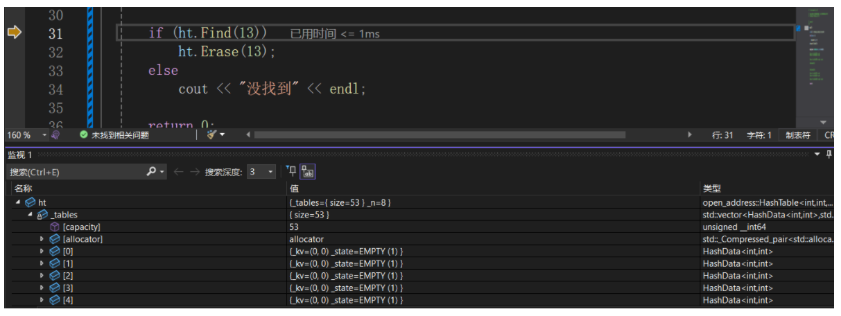 开放定址法线性探测代码实现