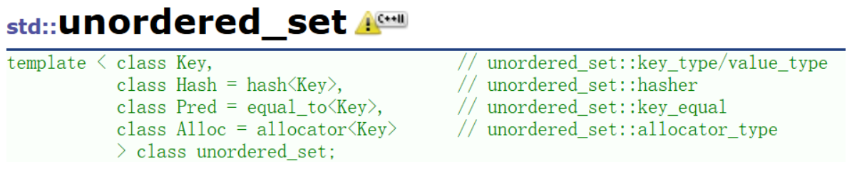 - unordered_set和set的第⼀个差异是对key的要求不同,set要求Key支持小于比较,而unordered_set要求Key支持转成整形且支持等于比较。
