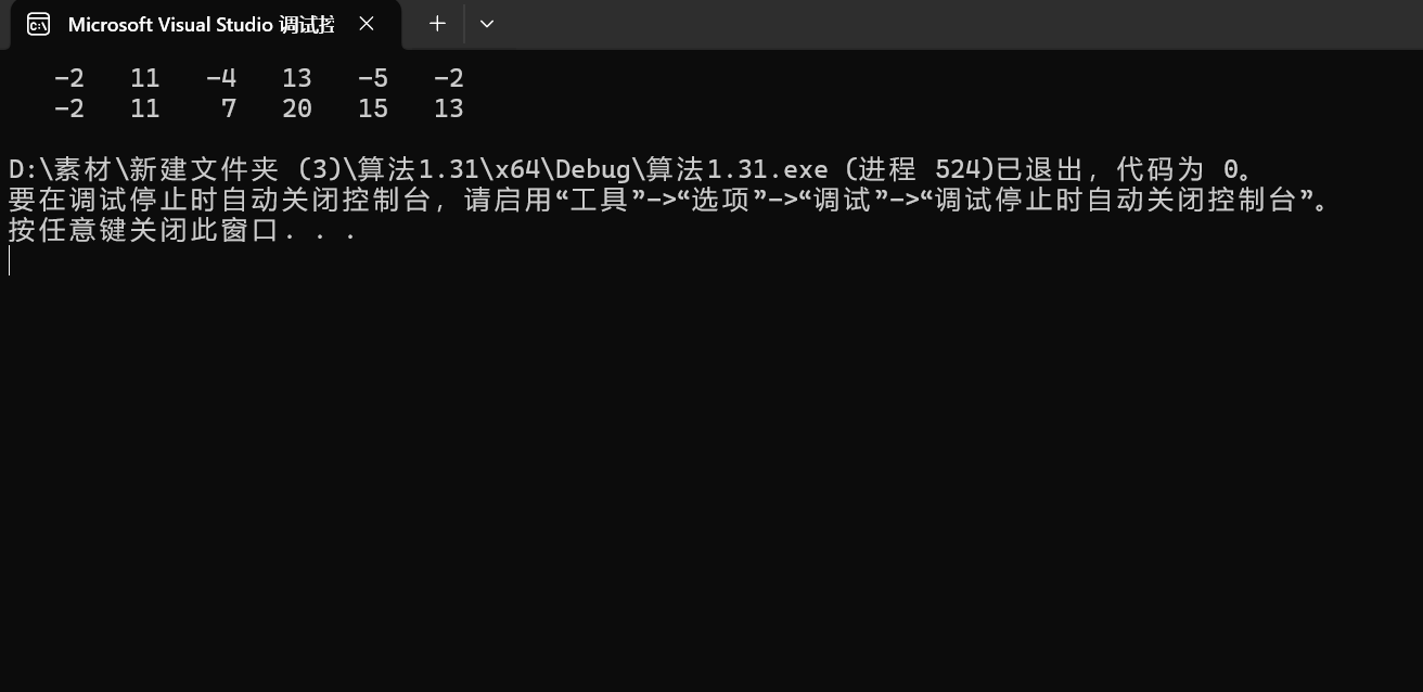 我们可以看到结果如下:其中上面的数组为原数组,下面的为我的dp数组