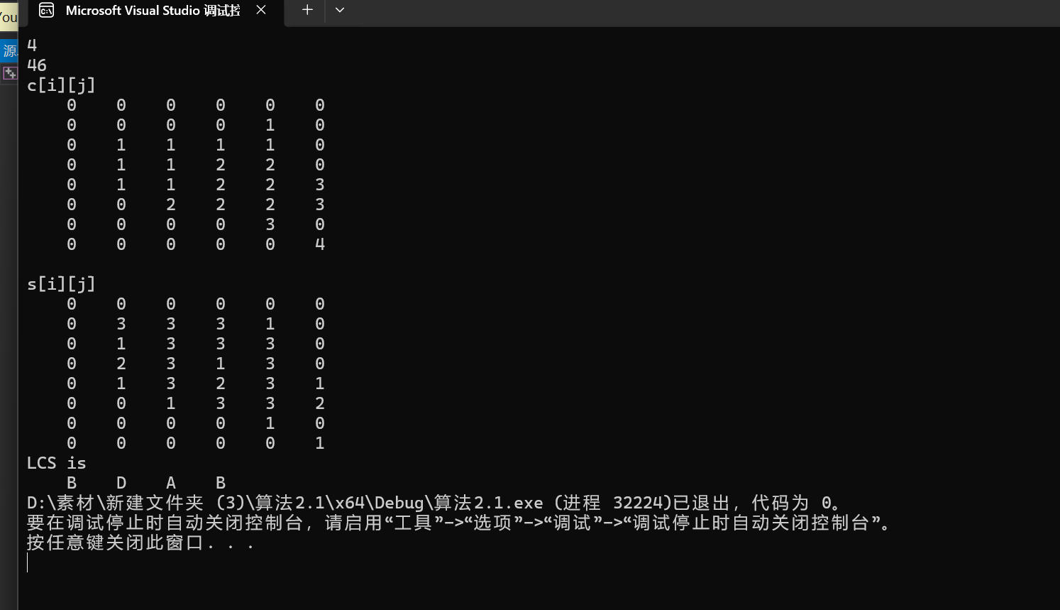 void LCS(char* X,int i ,int j, std::vector<std::vector<int>>& s)//回溯