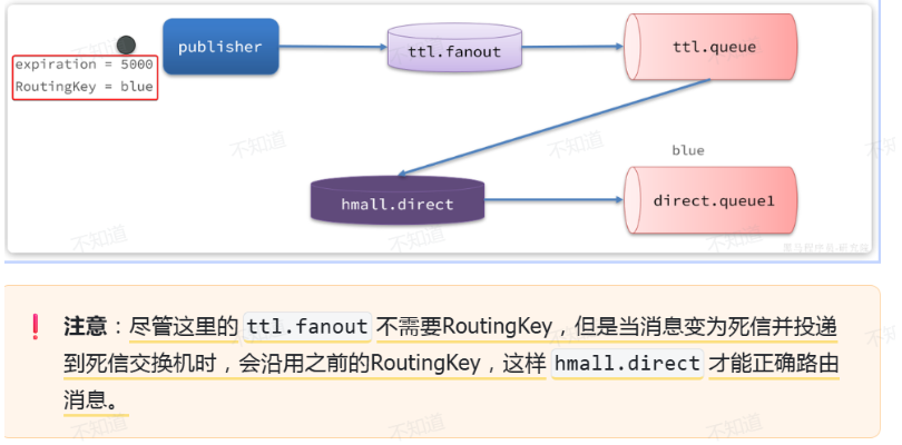 2.当消息超时未被消费成为死信,队列可绑定到死信交换机,再传递给其它队列被处理,实现延迟功能