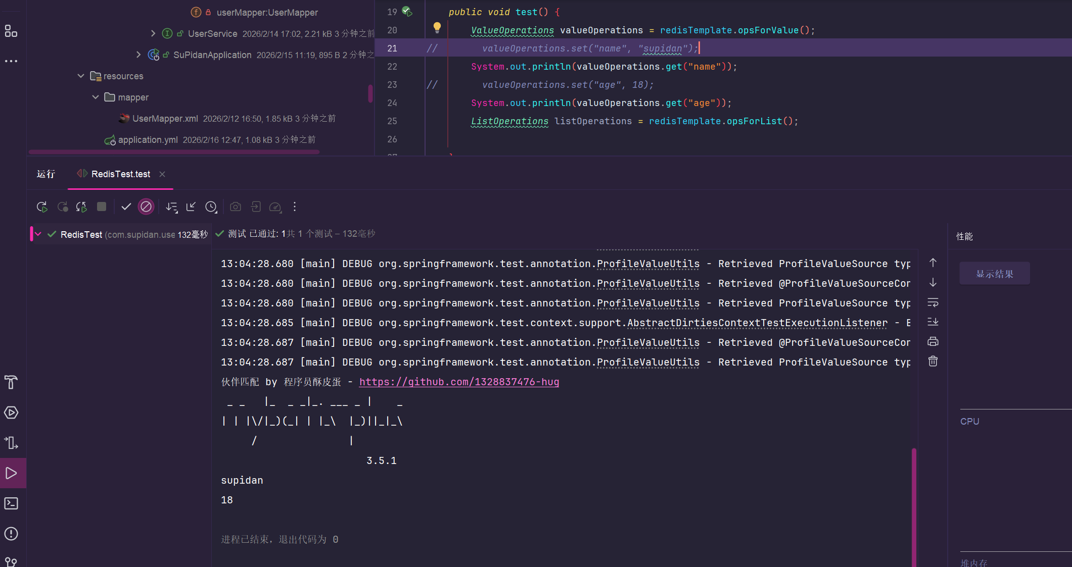 System.out.println(valueOperations.get("supidan"));