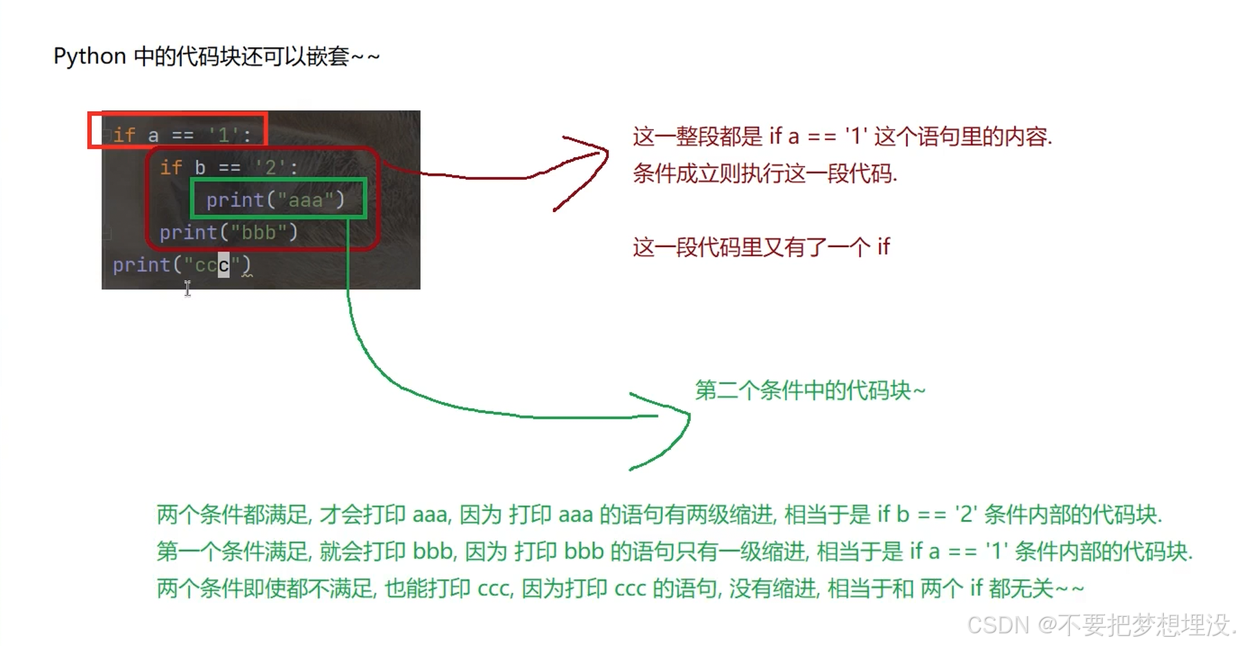 根据缩进不同 前一个if语句中如果满足条件会执行 print(a)