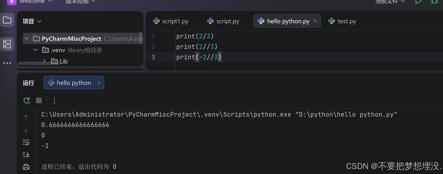 但是也有截断的除法叫做地板除法符号收是// 会向下取整