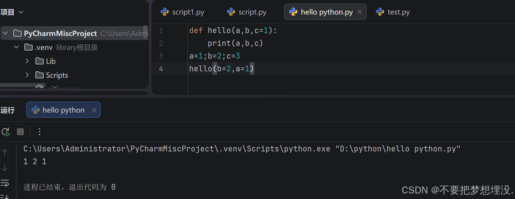 带有默认值的形参 就可以在调用函数的时候,不必传参