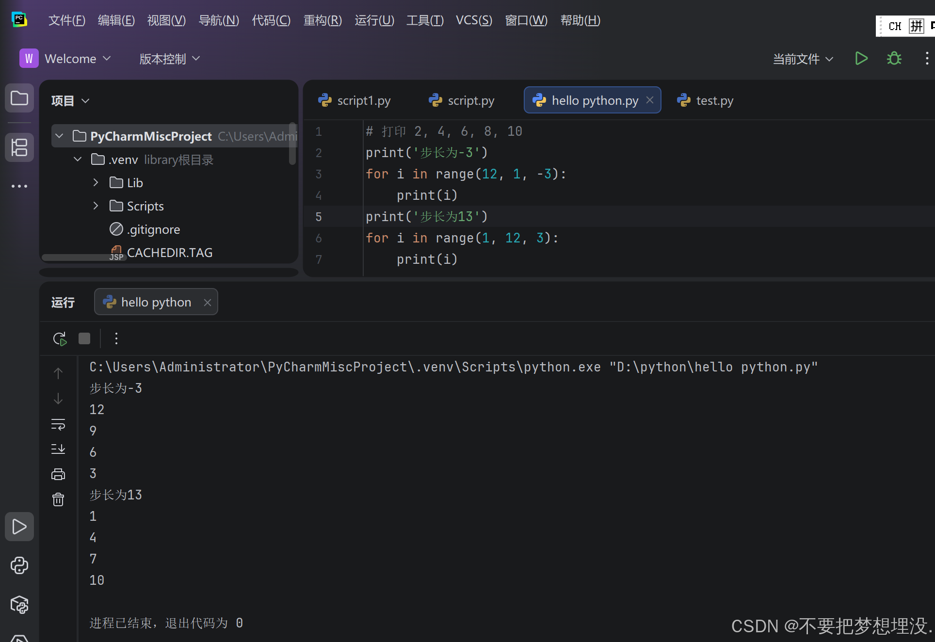步长为负数表示反向遍历,也就是从起始值向更小的数值方向迭代,同时range的 "前闭后开" 规则会适配反向逻辑。