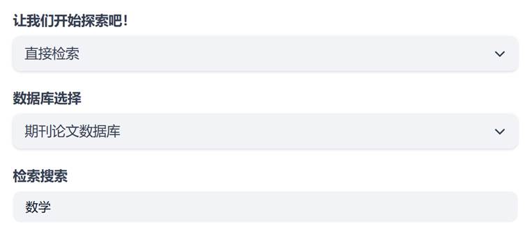 流程始于用户输入一个研究主题或关键词(如图3-2所示,"数学")。智能体并非在开放互联网上进行泛化搜索,而是通过深度集成的万方数据库专用插件,构造结构化检索式,执行精准查询。万方数据库提供的经过同行评议的期刊论文、会议论文、学位论文等高质量资源,确保了数据源的权威性、准确性与时效性。系统获取的不仅是一个文献列表,更是一个包含标题、摘要、关键词、作者、机构、发表时间、DOI等丰富元数据的标准化文献集合。