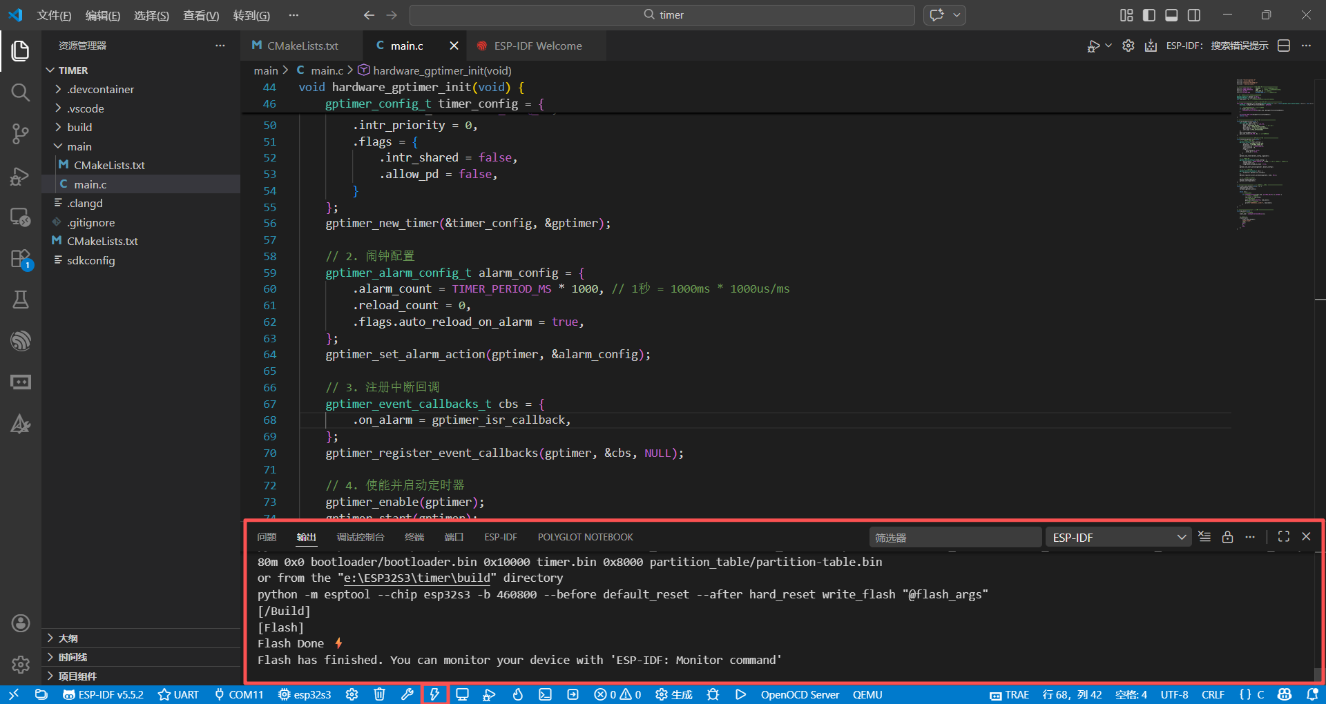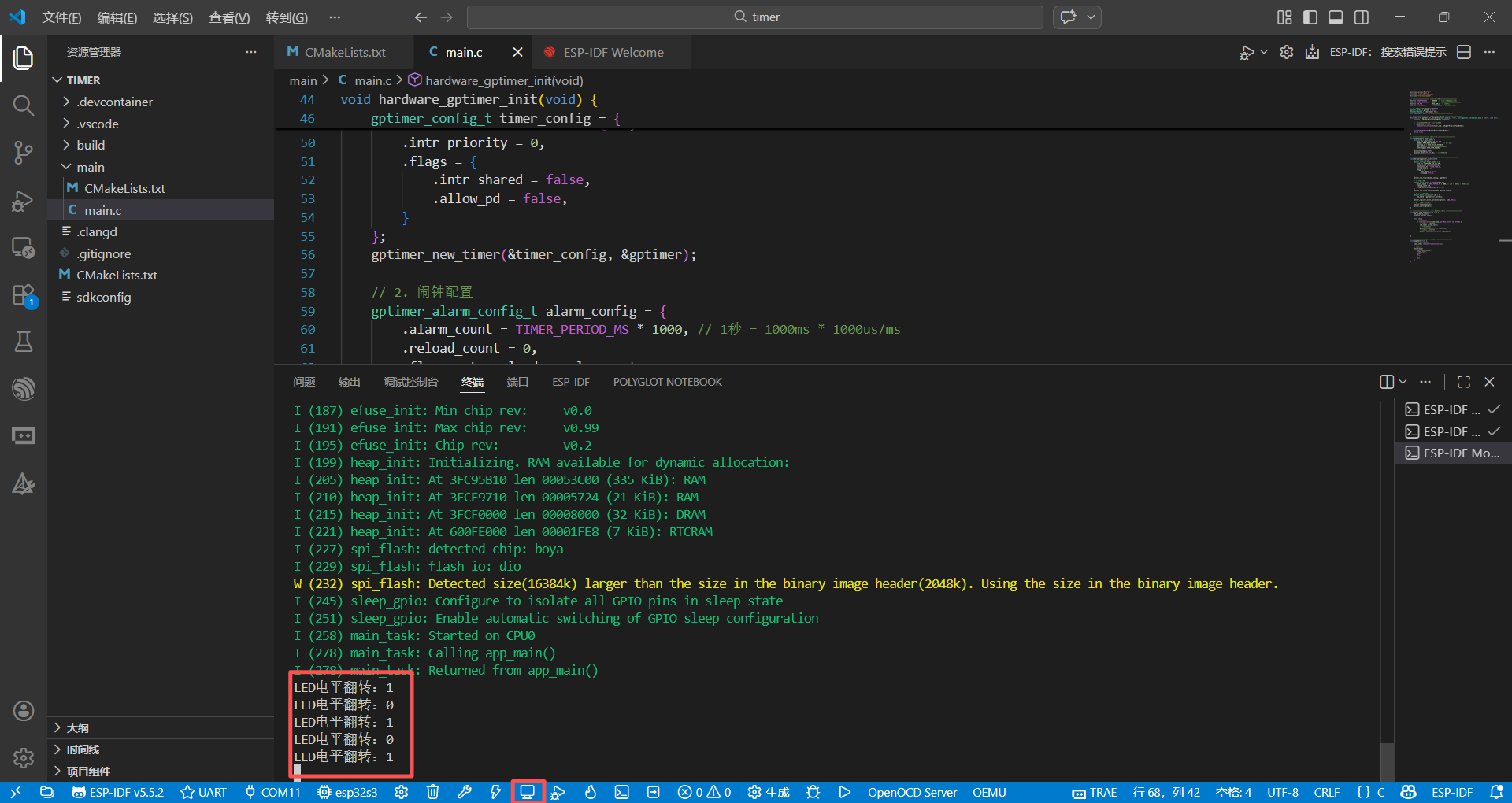 这里我们使用的是ESP-IDF的5.5.2版本,此版本弃用了原先的timer,改用了gptimer,所以我们使用gptimer进行讲解。
