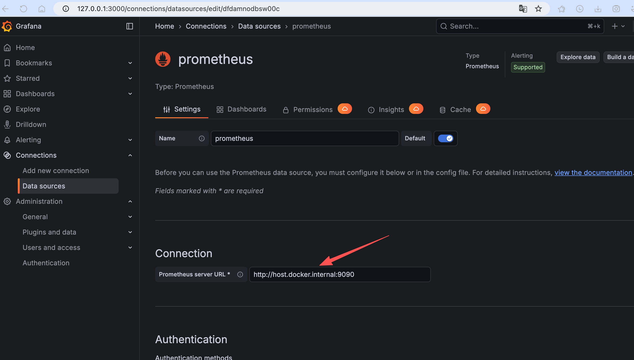 访问地址:http://127.0.0.1:3000/, 然后添加数据源