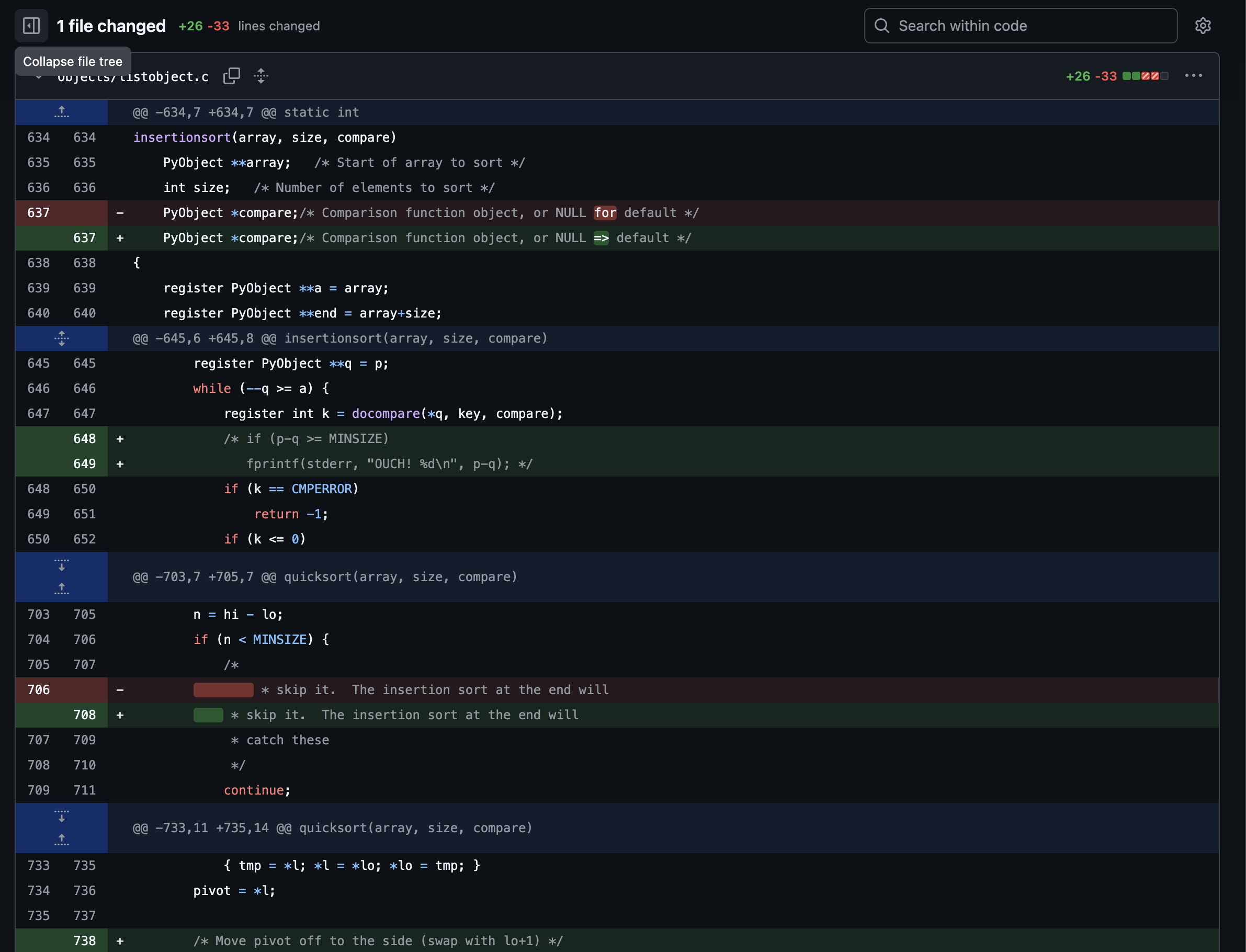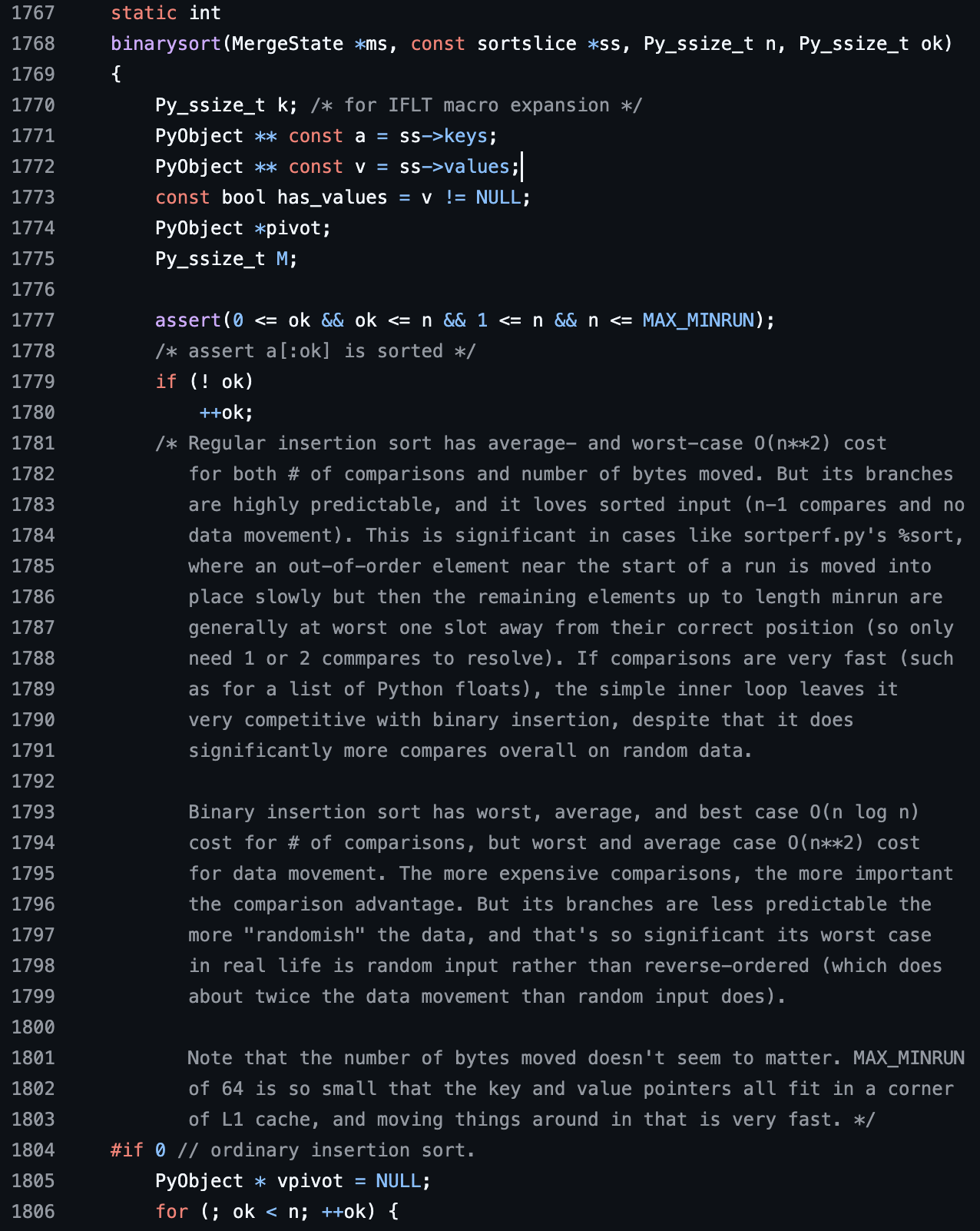 new_run = [the_array[0]]# for every i in the range of 1 to length of array for i in range(1, length): # if i is at the end of the list if i == length - 1: new_run.append(the_array[i]) runs.append(new_run) break # if the i'th element of the array is less than the one before it if the_array[i] < the_array[i-1]: # if new_run is set to None (NULL) if not new_run: runs.append([the_array[i]]) new_run.append(the_array[i]) else: runs.append(new_run) new_run = [] # else if its equal to or more than else: new_run.append(the_array[i]) # for every item in runs, append it using insertion sort for item in runs: sorted_runs.append(insertion_sort(item)) # for every run in sorted_runs, merge them sorted_array = [] for run in sorted_runs: sorted_array = merge(sorted_array, run) print(sorted_array)timsort([2, 3, 1, 5, 6, 7])