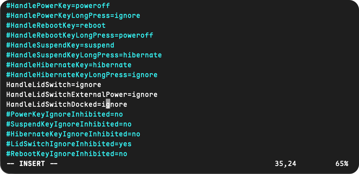 HandleLidSwitch=ignore