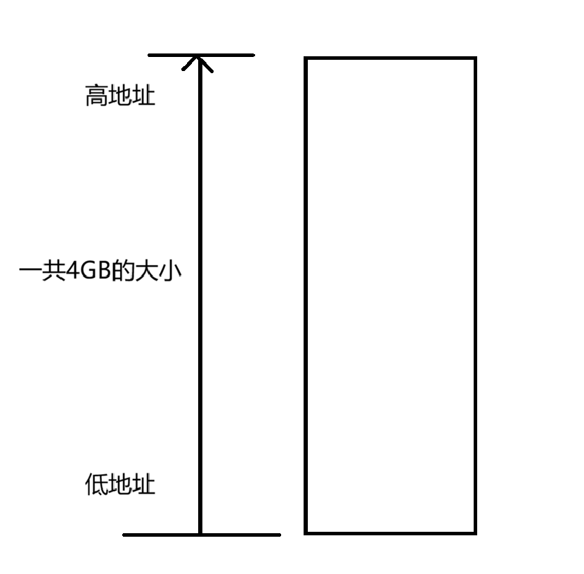 我们知道地址其实就是用数字来表示,所以现在我们就有2的32次方个小长方形,每个小长方形的大小是1个字节。所以现在就有一个由2322^{32}232个小长方形组成的一个连续的空间,大小为2322^{32}232乘以1个字节,为4GB。