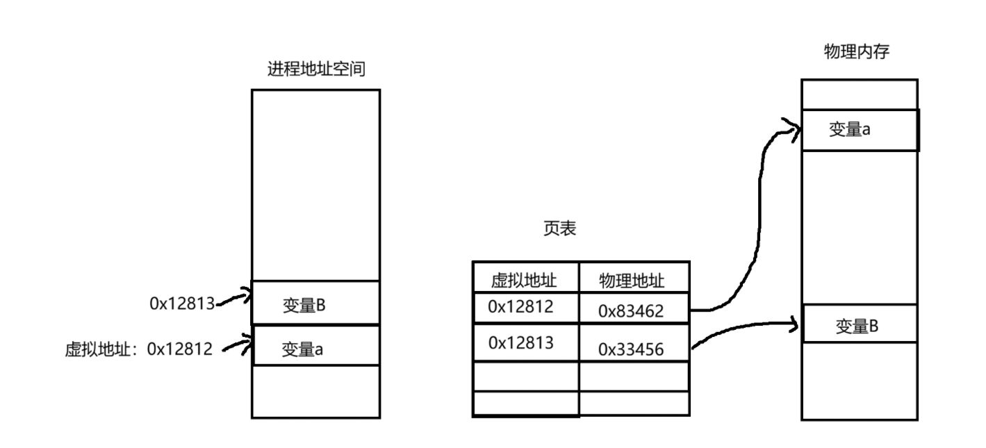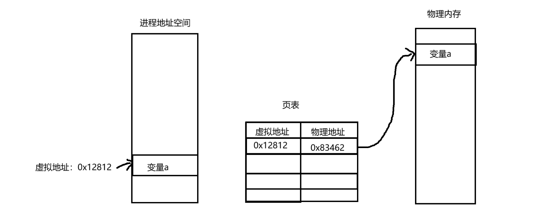 变量a有自己的虚拟地址,然后页表就会把这个虚拟地址转换成真实的物理地址。然后对物理地址中的变量a进行修改。