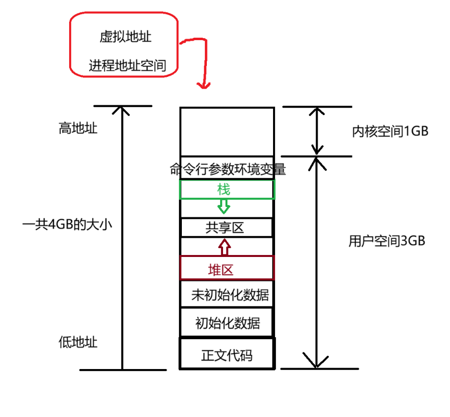 所谓的虚拟地址,其实就是每个进程都需要一块连续的4GB大小的内存。但是显示不可能给每一个进程都分一个连续的4GB大小的内存。这里的进程空间地址只是操作系统骗进程说:"你现在拥有着一块连续的4GB大小的空间给你使用"。实际上并没有分配这么多的内存给进程。
