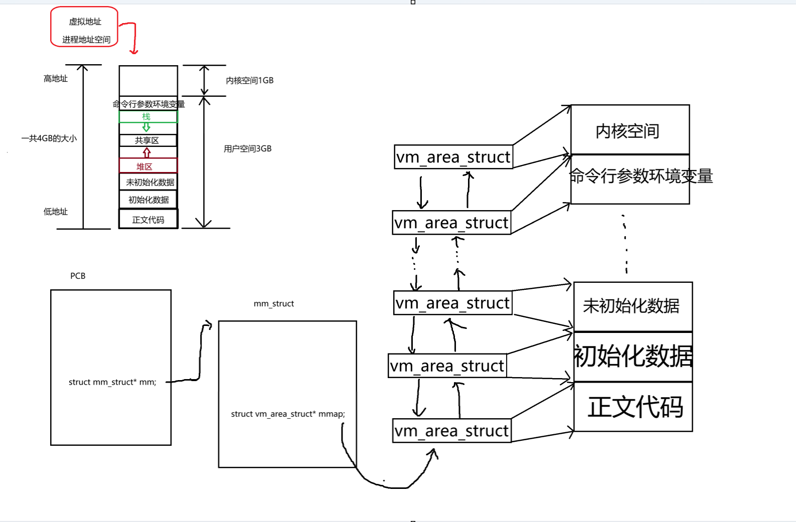 mm_struct 模拟出了 4GB 虚拟地址空间的 "整体大小和框架",而 VMA (vm_area_struct)则相当于模拟了这个空间里的 "具体区域和内容"。