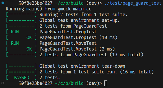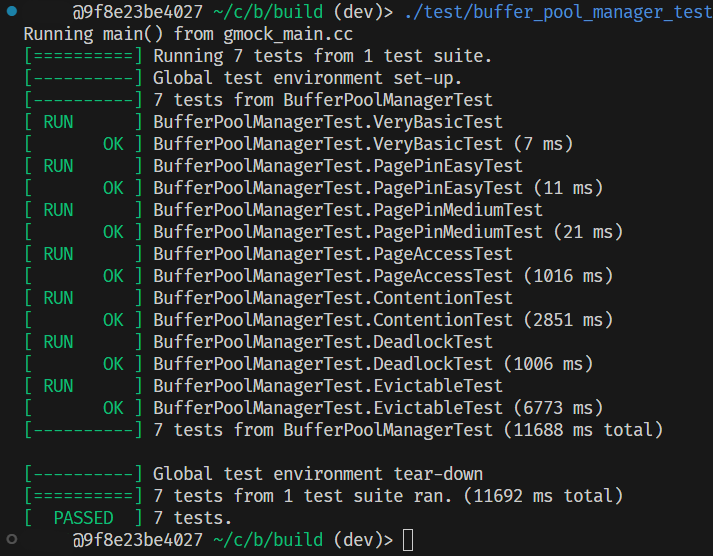 实现了 BufferPoolManager 后,我们有两个测试可以执行:bpm 的单元测试以及 page_guard 自己的单元测试,和一个 bpm-bench 性能分析测试。