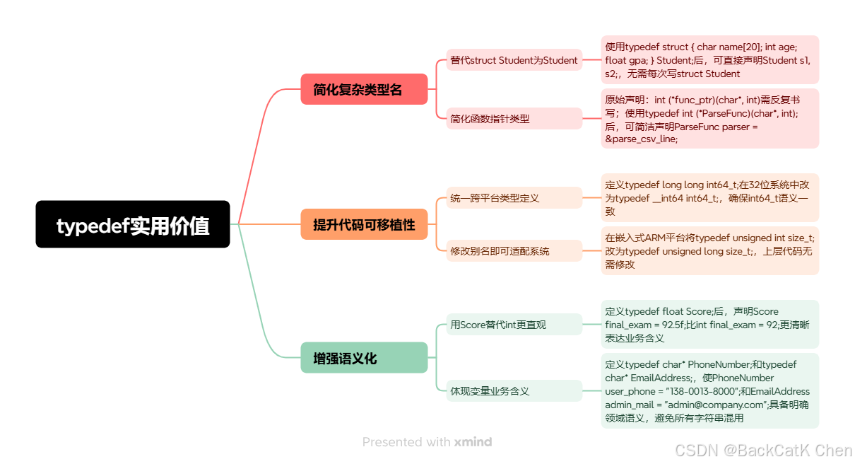 - typedef 📝 是类型别名工具,简化复杂类型名、提升代码可移植性和语义化,与#define的核心区别是"类型层面" vs "文本层面";