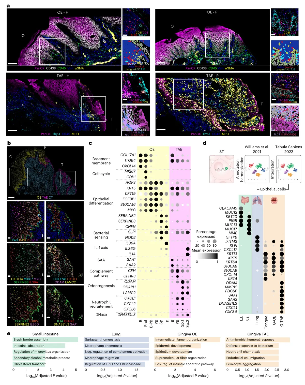 通过整合多组学方法,我们揭示了牙相关上皮邻近区域在健康与疾病状态下均保持的独特免疫分层结构,并在炎症性疾病中发现了具有支持局部抗体产生潜能的不成熟三级淋巴结构的形成