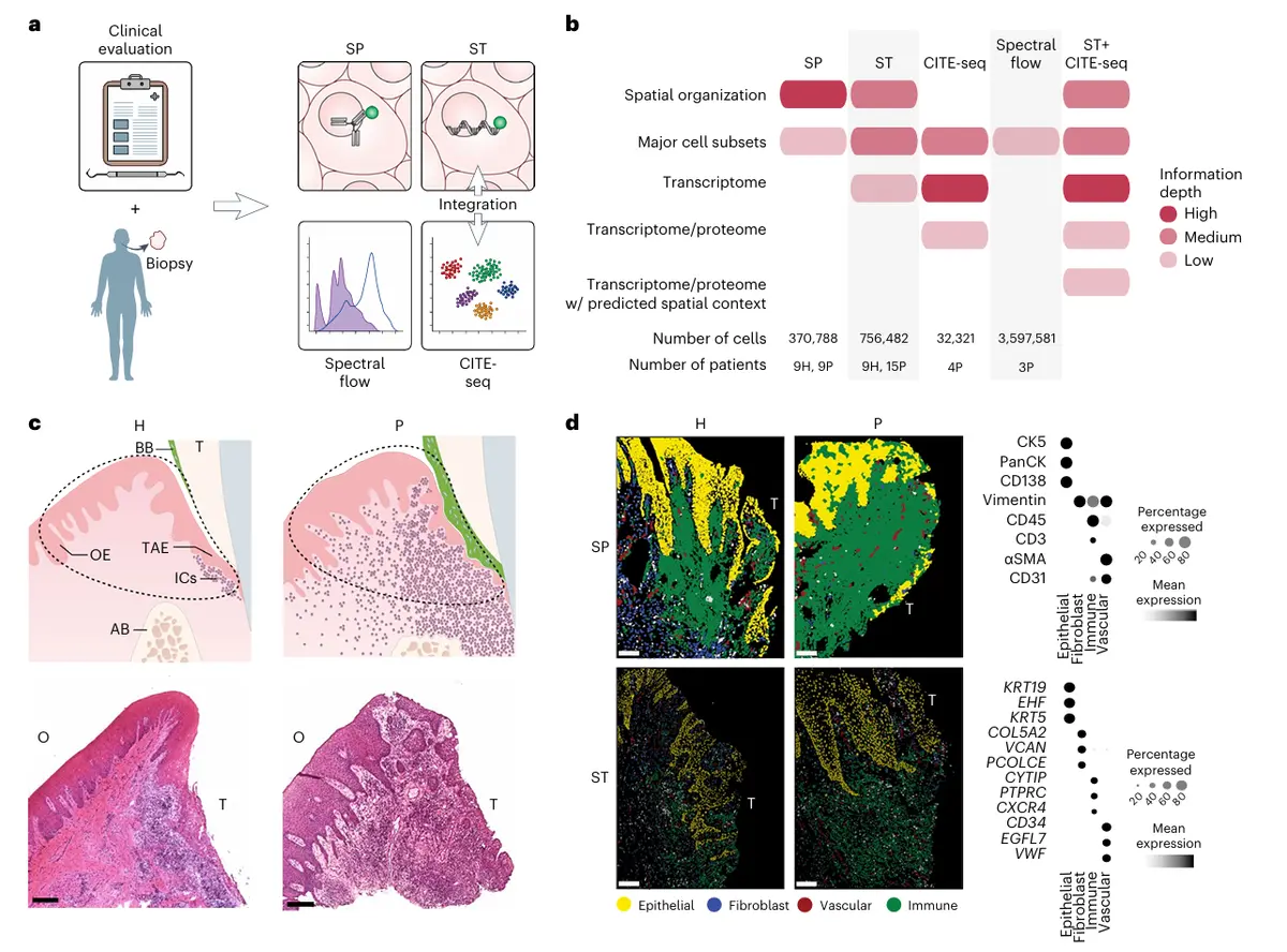 同时运用空间蛋白质组学与空间转录组学技术,以界定健康及病变牙龈中的细胞区室及其空间分布。