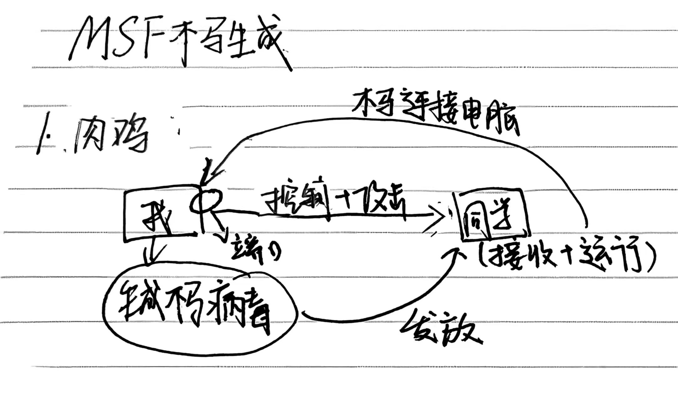 | 肉鸡 | 被控制的电脑(被控制人的电脑攻击) | 指被黑客植入木马或病毒后,可被远程操控的计算机。黑客可以用它发起 DDoS 攻击、窃取数据或作为跳板攻击其他目标。 |