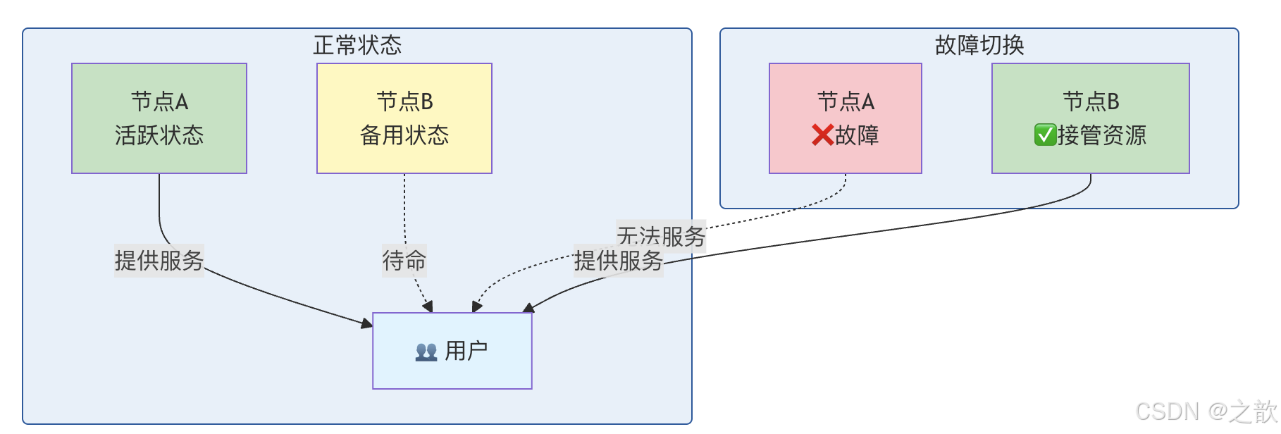 - 主从 HA:一个店员看店,另一个在休息室待命,随时顶上
