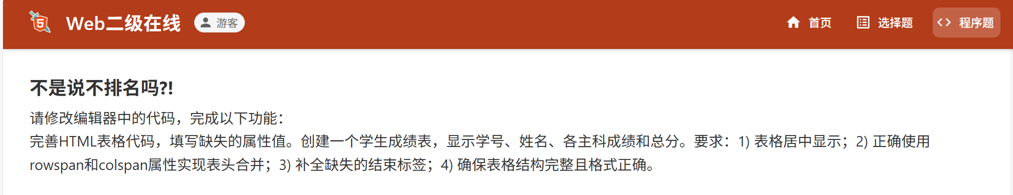 二级 Web 程序设计考试总时长为 120 分钟,满分 100 分,60 分及格。