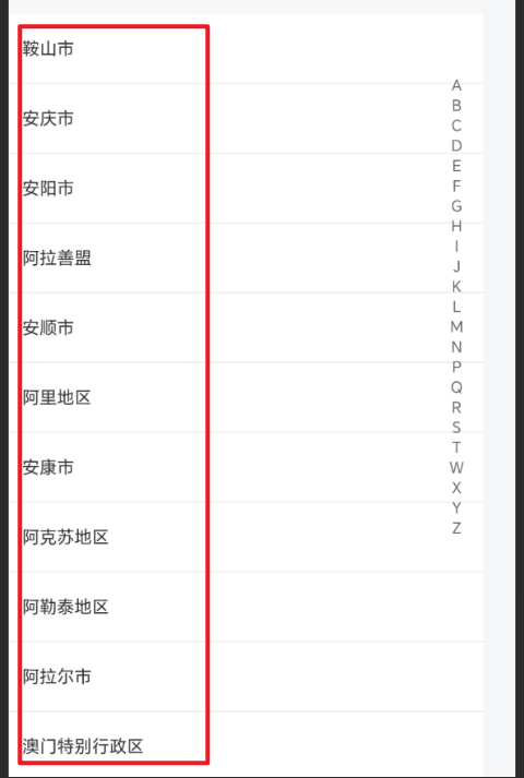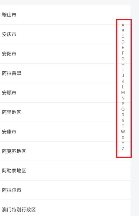 ● 获取按照A-Z分开的城市列表信息:该业务主要用来实现A-Z的城市划分,如咸鱼的城市选择组件