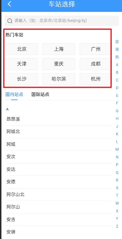 ● 获取热门城市:这个主要是根据业务来配置对应的热门城市,像12306买火车票