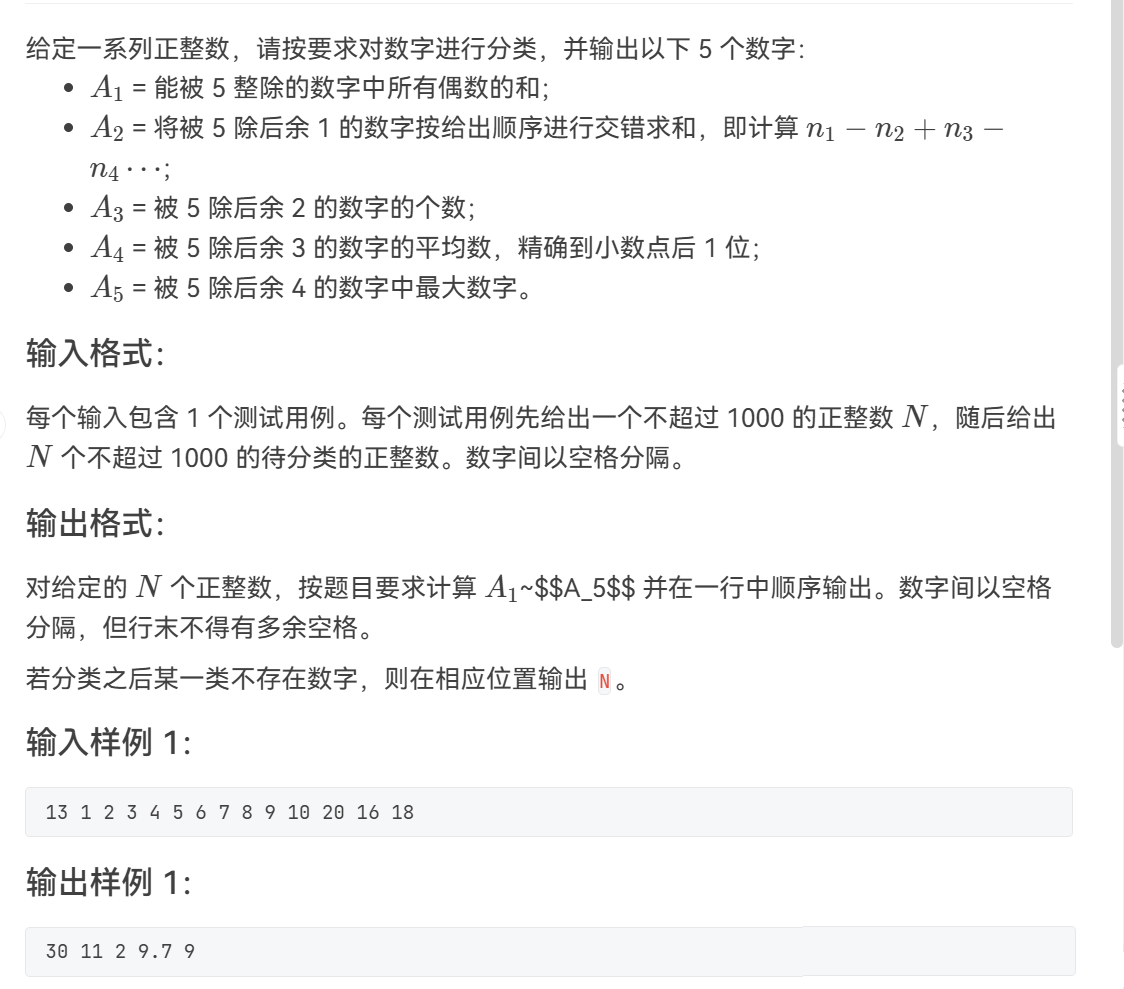 缘由PAT乙级真题解惑1012数字分类_编程语言-CSDN问答