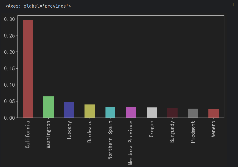 # 2. 计算 每个产地的 占比, 即: 产地产的葡萄酒数量 / 总共的葡萄酒数量