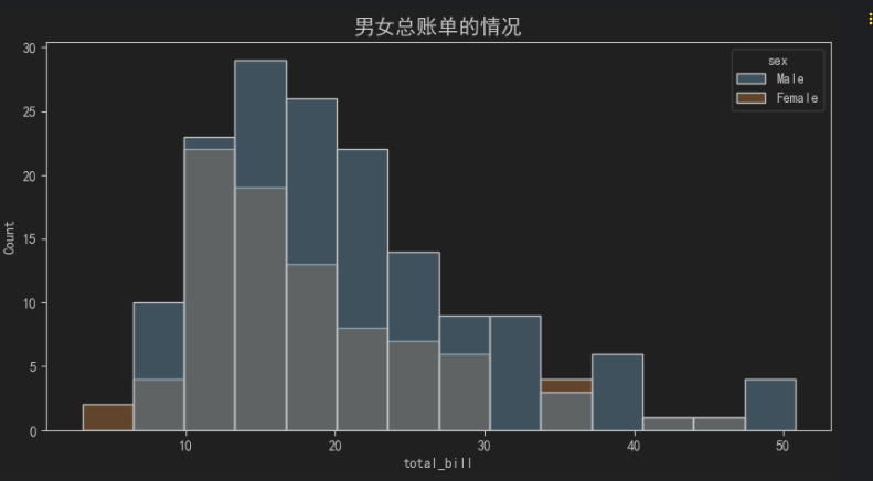 ax.set_title('男女总账单的情况', fontsize=15)