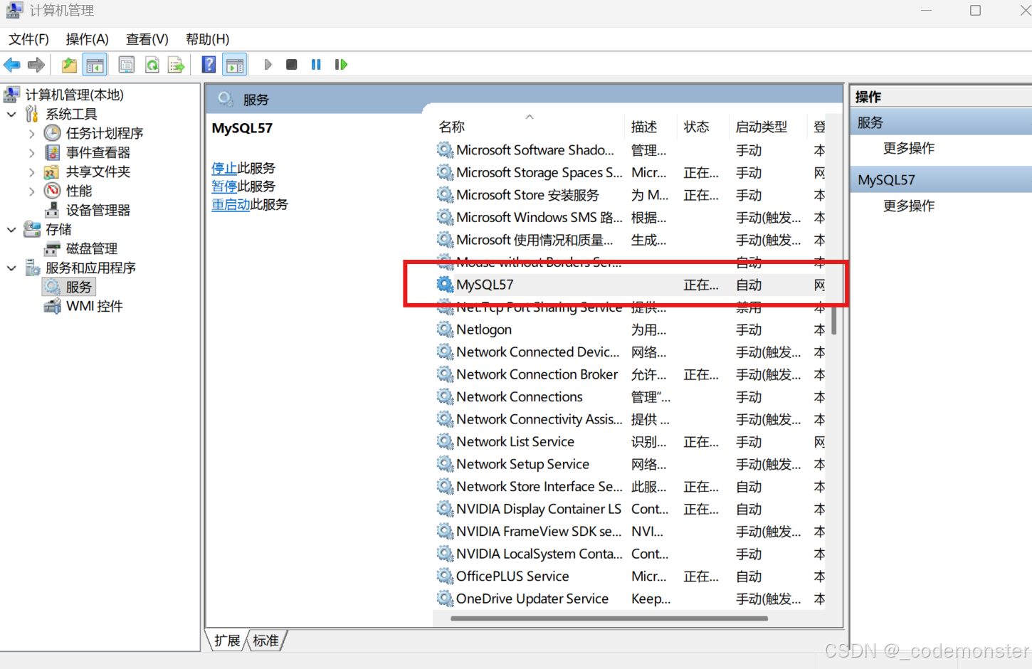 在服务里面可以查看到MySQL57服务。