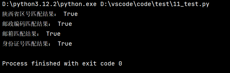 print("陕西省区号匹配结果:", re.match(area_code_pattern, area_code) is not None) # True