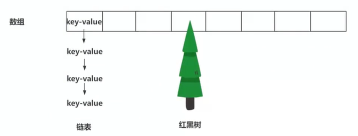 存储结构是数组+链表+红黑树