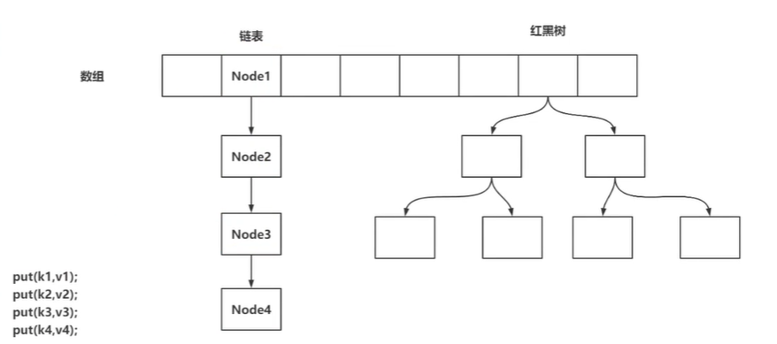 存放的结构:数组+链表+红黑树